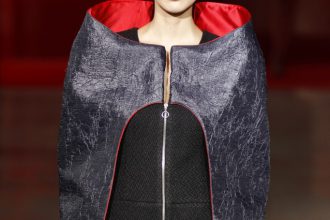 Intitolato “Black Dragon”, in visone nero e l’abito in persiano con colletto, accentuato da paillettes nere, sovrastato da una cappa di volpe.