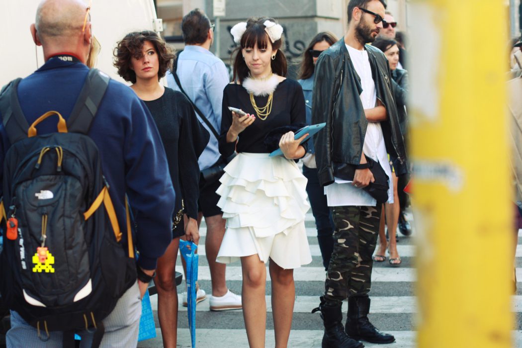 Gonna bianca e maglia nera Mario Chiarella www.vogue.it