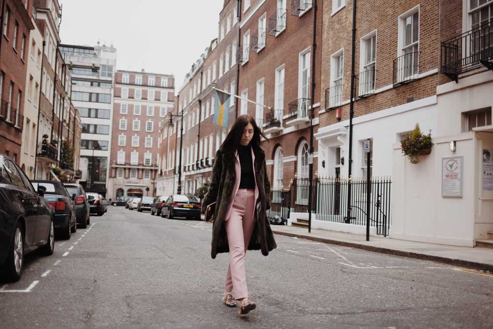Nelle foto che vedete in questo post mi trovo a Londra durante la London Fashion Week, e per combattere il freddo, essere sempre elegante e a mio agio ho indossato questa pelliccia de Carlis, e non a caso durante le sfilate più importanti. L’abbinamento perfetto per me? Ho scelto un completo rosa cipria scuro, il colore del prossimo anno, e le slippers di Gucci per essere comoda negli spostamenti fra una sfilata e l’altra.