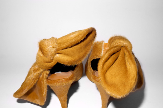 Scarpe col tacco rivestite in pelliccia.